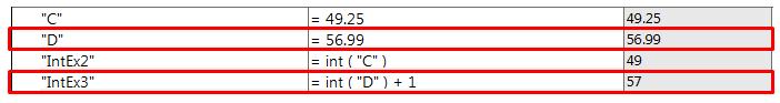 Another useful tool that users can benefit from is the integer, int() function and the round, round() function. Let’s take a look at the integer, int() function first. Here we are going to add in this function into our global variable. As seen in the figure below, you will notice that the integer function rounds DOWN any value with decimal places to the nearest whole number.